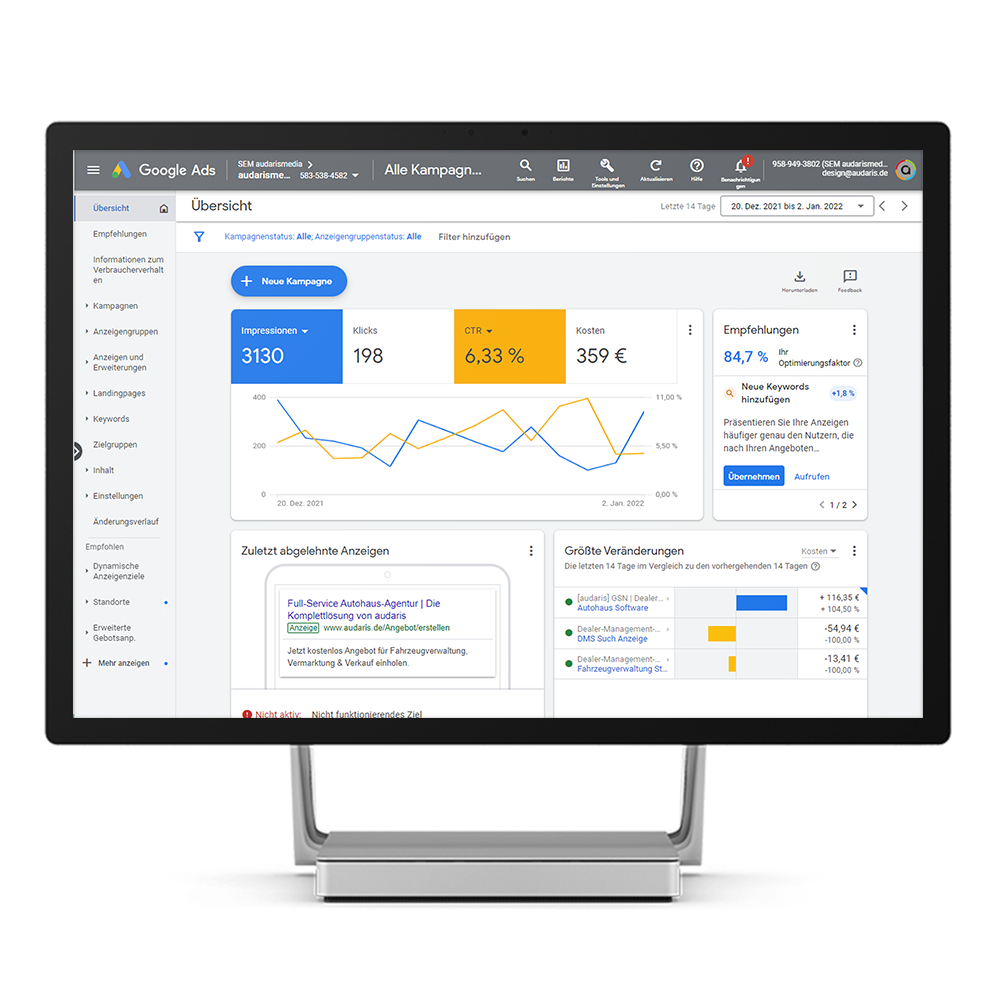Las Recomendaciones de Google Ads (Anteriormente llamadas Oportunidades) te muestran una serie de consejos que te ofrece Google Ads para